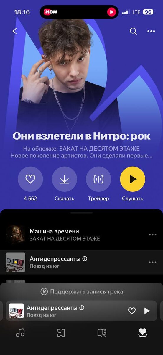 Проект «Поезд на юг». Рок, массовый жанр, высокая конкуренция, та самая среда, где каждый день выходит много новой музыки и внимание слушателя приходится буквально отвоёвывать. В январе у ребят вышел трек «Антидепрессанты». Сейчас он находится в чарте Нитро и держится на 29 месте. Ой, уже на 25 даже сегодня. Растет несколько дней. Артисты давно работают. Это не первый релиз и не история «повезло с одним треком». За проектом стоит регулярная работа, поиски, не самые простые этапы и нормальный, взрослый путь без резких скачков. Почему вообще имеет смысл фиксировать такие моменты. Попадание в плейлист или чарт - это не цель сама по себе и не гарантия дальнейшего роста. Но это маркер того, что трек начал находить отклик у аудитории и, как следствие, внутри платформы и получил возможность дальше двигаться по своей траектории. Дальше всё зависит не от одного факта, а от того, как проект живёт после него. Это уже обычная, не очень заметная со стороны работа, которая редко выглядит эффект
