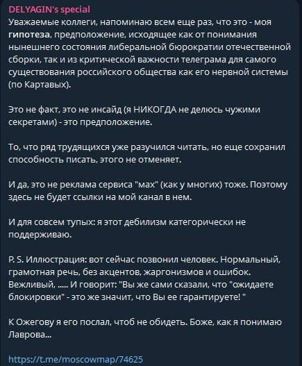 👀 Делягин ответил на массовые упоминания о закрытии тг