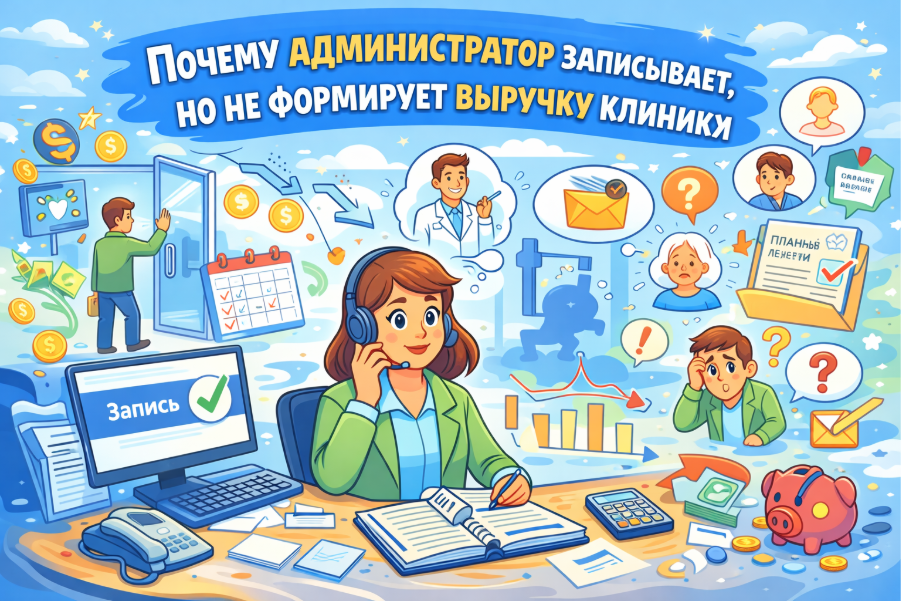 Администратор может идеально записывать пациентов и при этом не формировать выручку клиники. Причина не в людях, а в том, как определена их роль. Пока администратор отвечает только за запись, клиника теряет деньги на самых ранних этапах пути пациента.
