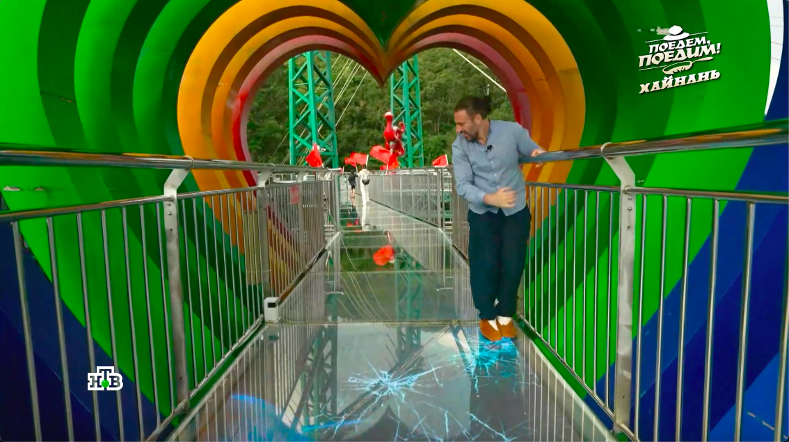 Стеклянный мост — одна из главных достопримечательностей китайского острова Хайнань. Чтобы попасть на экстремальный аттракцион, надо надевать бахилы для защиты стекла.
