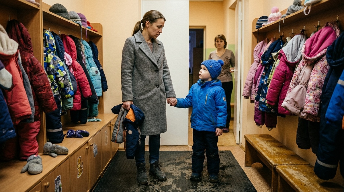 Анна всегда забирала Кирилла из детского садика в раздевалке, где пахнет мокрыми варежками и яблочным компотом, где дети вечно путают сапоги, а родители говорят одинаковыми голосами: “Ну давай быстрее, солнышко”.