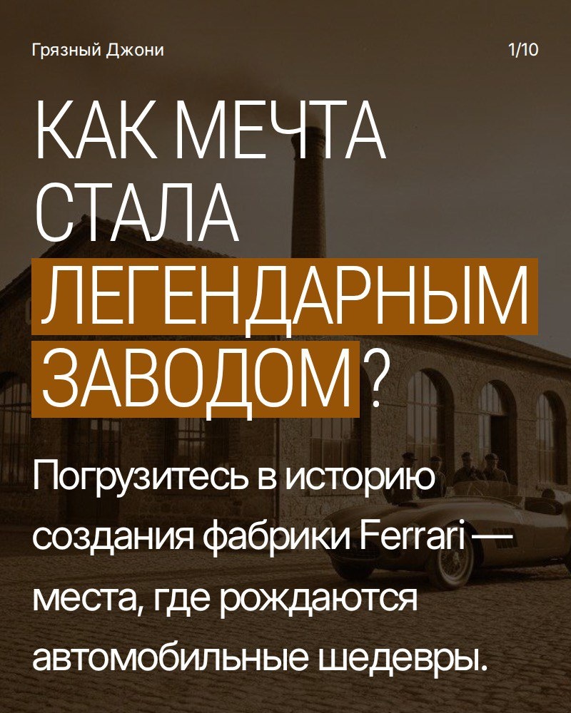 🏁 Энцо Феррари: "Я никогда не думал, что стану производителем автомобилей. Я был просто гонщиком" Листай карусель → История завода, который пережил войну и создал легенду 🔴 #Ferrari #Маранелло #АвтоЛегенда