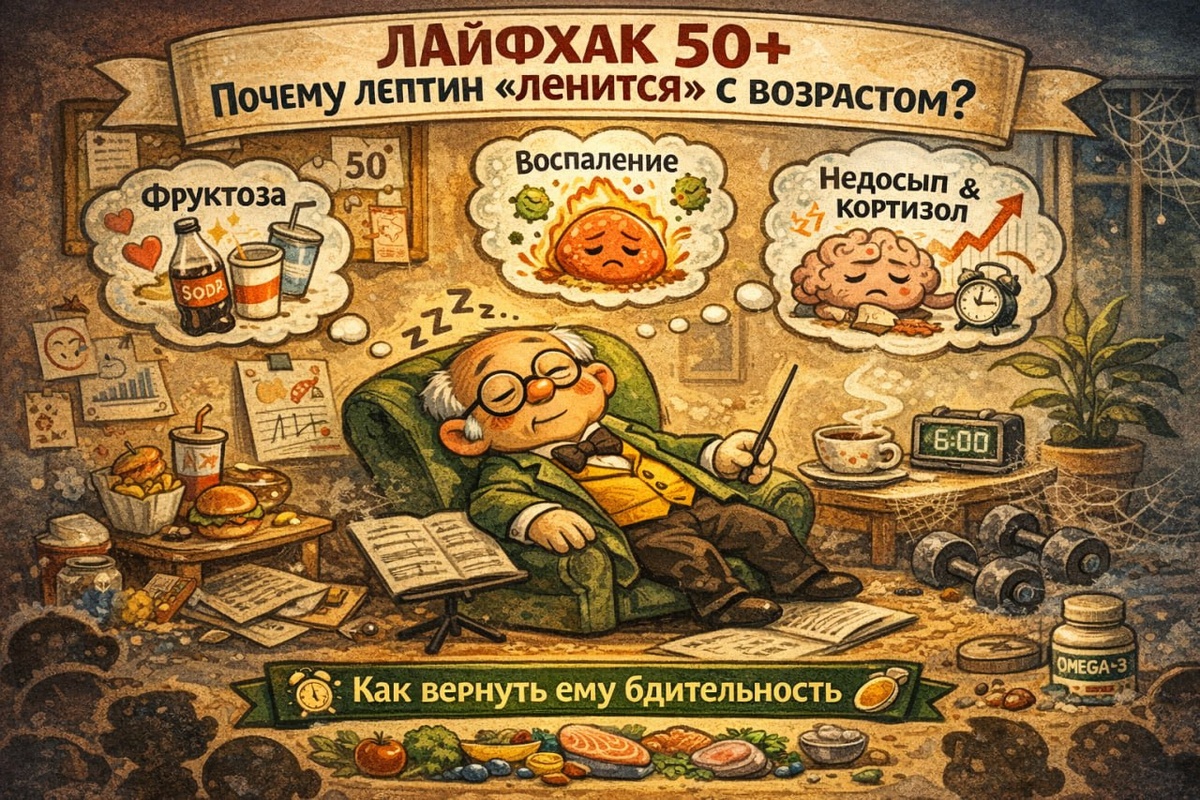🦥ЛАЙФХАК 50+: Почему лептин «ленится» с возрастом и как вернуть ему бдительность