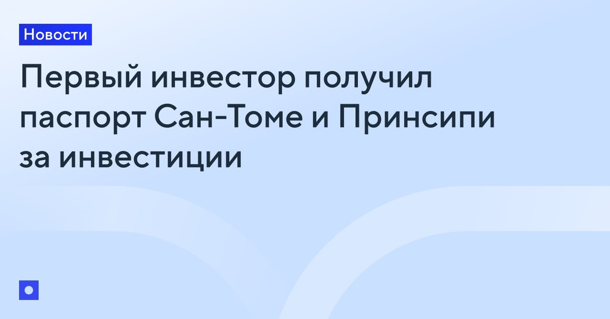 Правительство Сан-Томе и Принсипи выдало первый паспорт за инвестиции в январе 2026 года