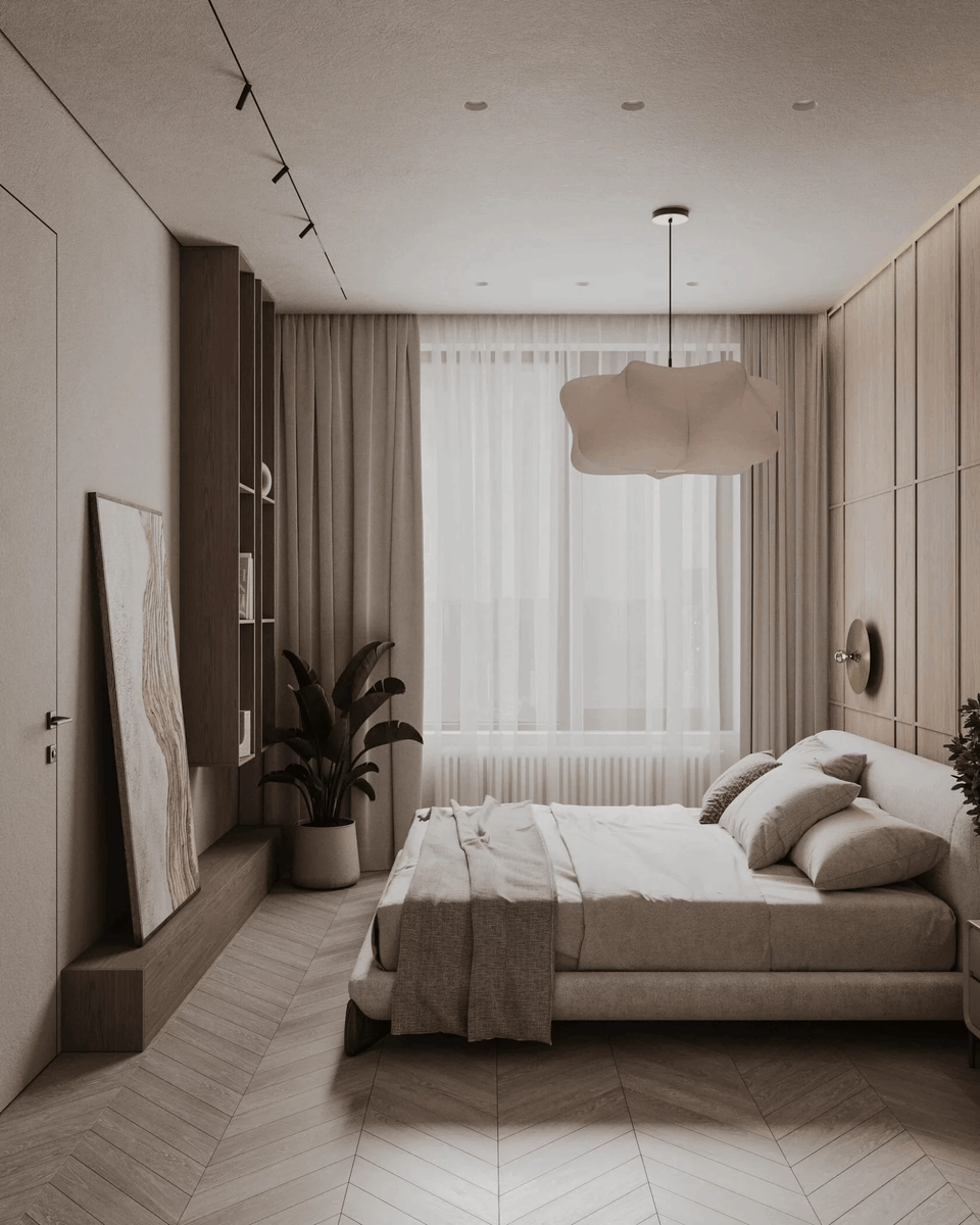 Спальня — это не просто комната для сна, а личное пространство, где важна каждая деталь: от освещения до напольного покрытия. Среди множества вариантов отделки пола именно паркет в спальне остаётся одним из самых востребованных решений. Почему? Ответ прост: он дарит ощущение тепла, уюта и при этом органично вписывается в любые интерьерные стили. Паркет в спальне не только эстетичен, но и безопасен: он не скользит, не выделяет вредных веществ и приятен на ощупь даже босиком. Кроме того, дерево обладает уникальной способностью придаваться интерьеру уют, благодаря теплым оттенкам, натуральной текстуре, идеально сочетается с текстилем, деревянной мебелью, мягким освещением — всем, что создаёт атмосферу отдыха. Современный паркет — это не только классические дубовые доски. Сегодня производители предлагают широкий выбор оттенков, текстур и укладок: от светлого ясеня до тёмного венге, от прямой-палубной укладки до различных комбинированных решений . Главное — соблюдать баланс между полом, меб