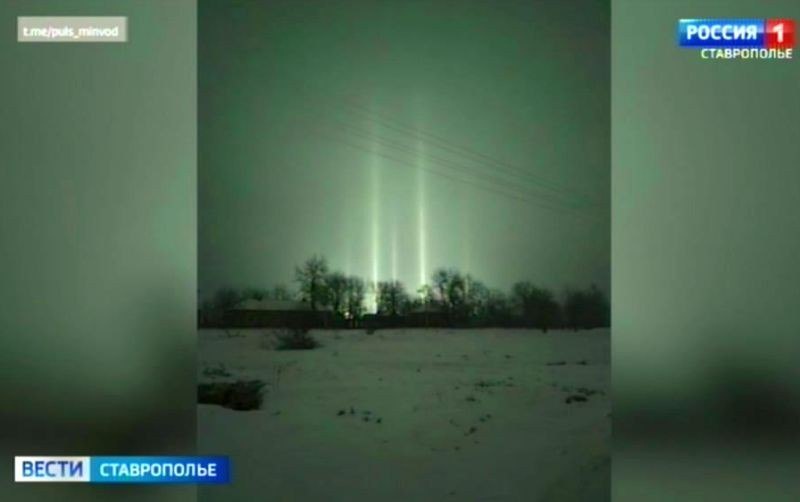 Столбы яркого света озарили небо в Минераловодском округе. Выглядят они почти как северное сияние, которое нашему региону не свойственно. Такое явление — результат сильной минусовой температуры и безветренной погоды. ГТРК «Ставрополье» | Читайте нас в MAX