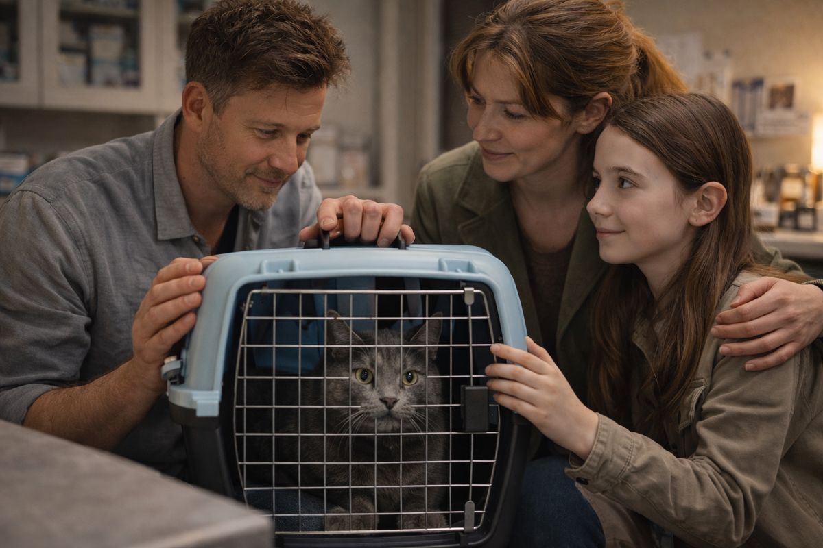 На выходе отец взял переноску сам. Мама не выхватила, не “я лучше”. Просто пошла рядом. Лера шла с другой стороны и держала кота пальцами через сетку, как будто проверяла: “ты с нами?”.