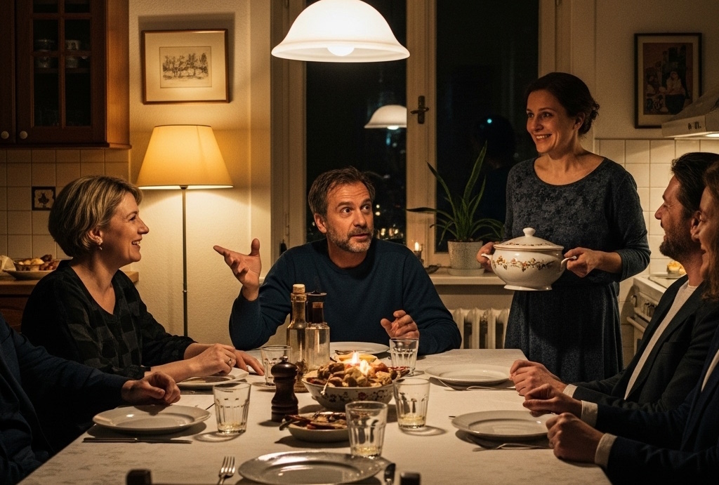 Серёжа рассказывал про её борщ. Не про борщ вообще — про её борщ конкретно. Как она однажды забыла положить капусту. Как потом уверяла, что это белорусский вариант. Как он, бедный, давился и не мог сказать, что это просто свекольная вода. Смеялись все. Она смотрела на его руки. На то, как он держит бокал — уверенно, красиво. Как поворачивается к Наташе, чтобы она тоже услышала. Наташа слышала. Это был их дом. Их гости. Их пятничный вечер, когда всё, как обычно: Серёжа рассказывает, она подливает, кто-то говорит «ну ты даёшь», и она улыбается. Двадцать три года она улыбалась. За неделю до этого она нашла переписку. Не специально — телефон лежал на зарядке, экран вспыхнул. Она прочитала одно сообщение. Потом второе. Потом положила телефон ровно так, как он лежал. Он не знал, что она знает. Она не знала, зачем молчит. — А помните, как она на юбилей тёщи пришла в кроссовках? Это уже Лёша. Лёша всегда подхватывал. Серёжа кивнул — давай, давай, расскажи. Она действительно пришла в кроссовках
