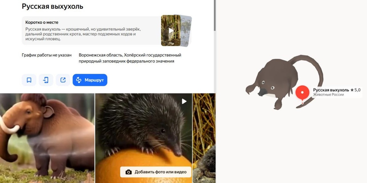 Яндекс Карты выпустили новую фишку ко Дню защиты животных. Подборку 3D-моделей редких животных России, где каждого зверя можно «покрутить», посмотреть где он обитает и чем вообще уникален. Что там есть: — 15 редких видов животных от русской выхухоли до амурского тигра; — короткие описания с любопытными фактами; — реальные места обитания; — ссылки на фонды, которые им помогают. ➡ Вот ссылка на подборку. Скорее всего, откроете «просто посмотреть» и залипнете #новости