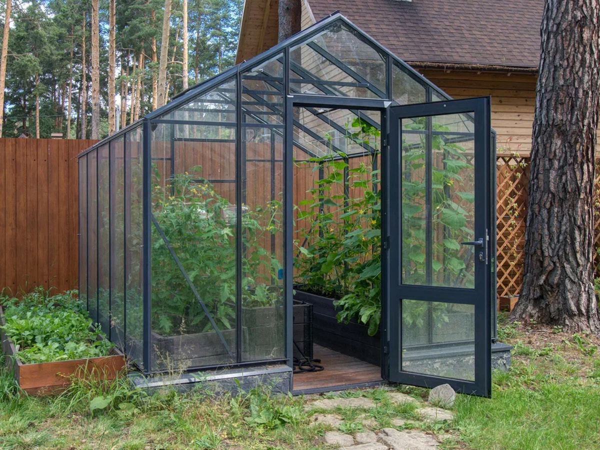 📍 Что за теплица: английского, «домикового» типа — стильная, аккуратная и проверенная годами модель.