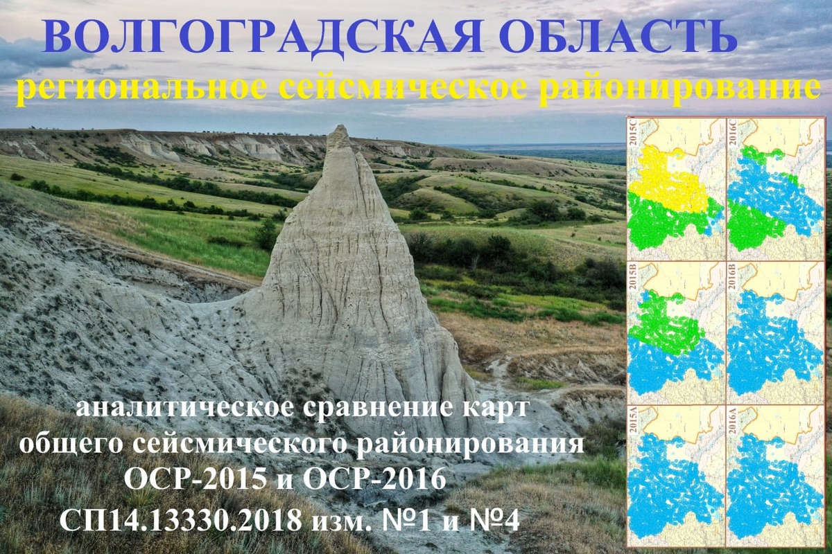 интенсивности региона Российской Федерации Волгоградская область. На фото представлены сравнительные данные ожидаемой сейсмической интенсивности по картам ОСР-2015А,В,С и ОСР-2016А,В,С. Для создания Результаты сравнения наводят на размышления... Мозаика составлена из более чем тысяч четырехсот координатных точек населенных пунктов Волгоградской области.