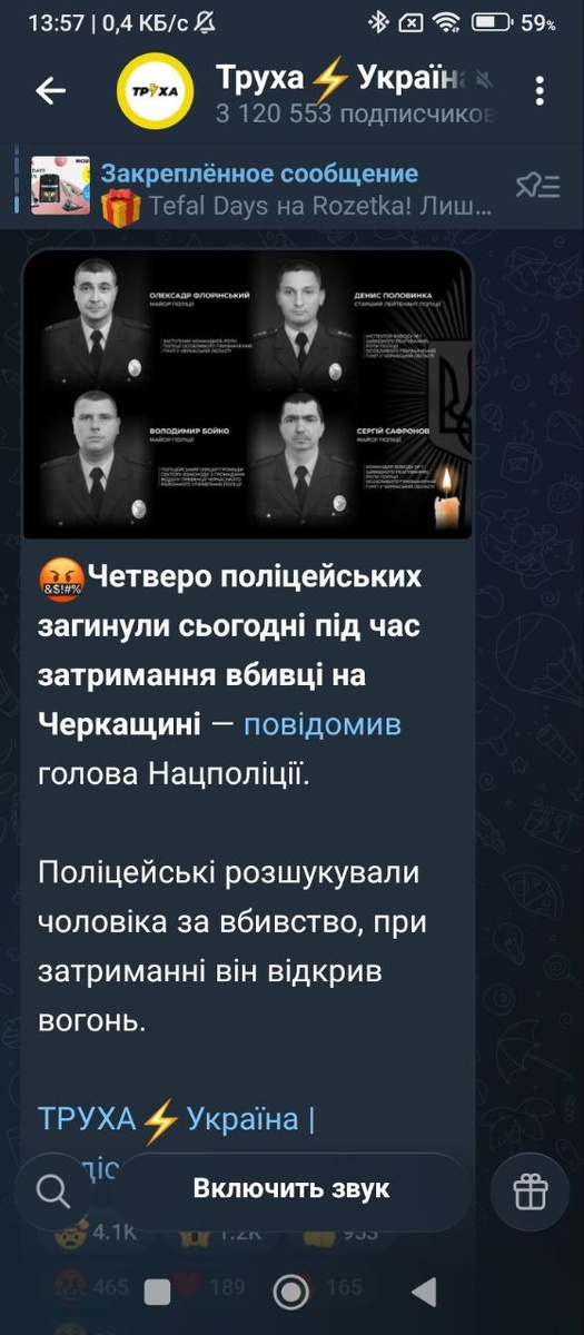 🐽☠ Перевод Сегодня четверо полицейских погибли во время задержания убийцы в Черкасской области — сообщил глава Национальной полиции. Полицейские разыскивали мужчину за убийство, при задержании он открыл огонь. https://dzen.ru/id/62bd3a507a2e4f0f3b546b33 - ПОДПИСАТЬСЯ https://t.me/Forpestbot - ПРИСЛАТЬ НОВОСТЬ Пошла жара душегубов☠ стали еба7ить