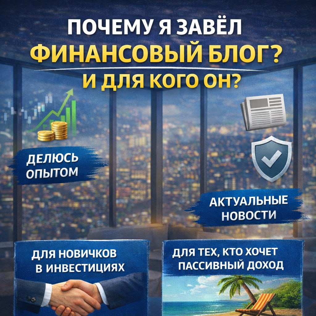 к. давно не писал посты в канал Почему я завёл финансовый блог и для кого он❓ Мне очень интересен вопрос финансов и мне нравится накапливать и преумножать свои деньги, пускать их в работу. Всё началось с того, что я начал копить на квартиру и меня это так увлекло, что высчитав необходимую сумму для комфортной жизни на месяц, я всё нёс в банк. По мере накопления, подумал,а можно как то получать больше от тех денег, что у меня есть. Начал искать и оказалось, что это целый неизученный мир. Так я пришёл в мир финансов и инвестиций. Начав с малого - обычные накопления на депозите, пришёл к финансовой грамотности, инвестициям и пассивному доходу. У меня есть рисковые активы и консервативные. Всё это работает по разному, но основное, на что я делаю упор и буду рассказывать - это именно БЕЗОПАСНЫЕ и БЕЗРИСКОВЫЕ стратегии инвестирования. И конечно о базовой финансовой грамотности тоже буду рассказывать. Если вам хочется быть финансово стабильными и научиться управлять и преумножать сво