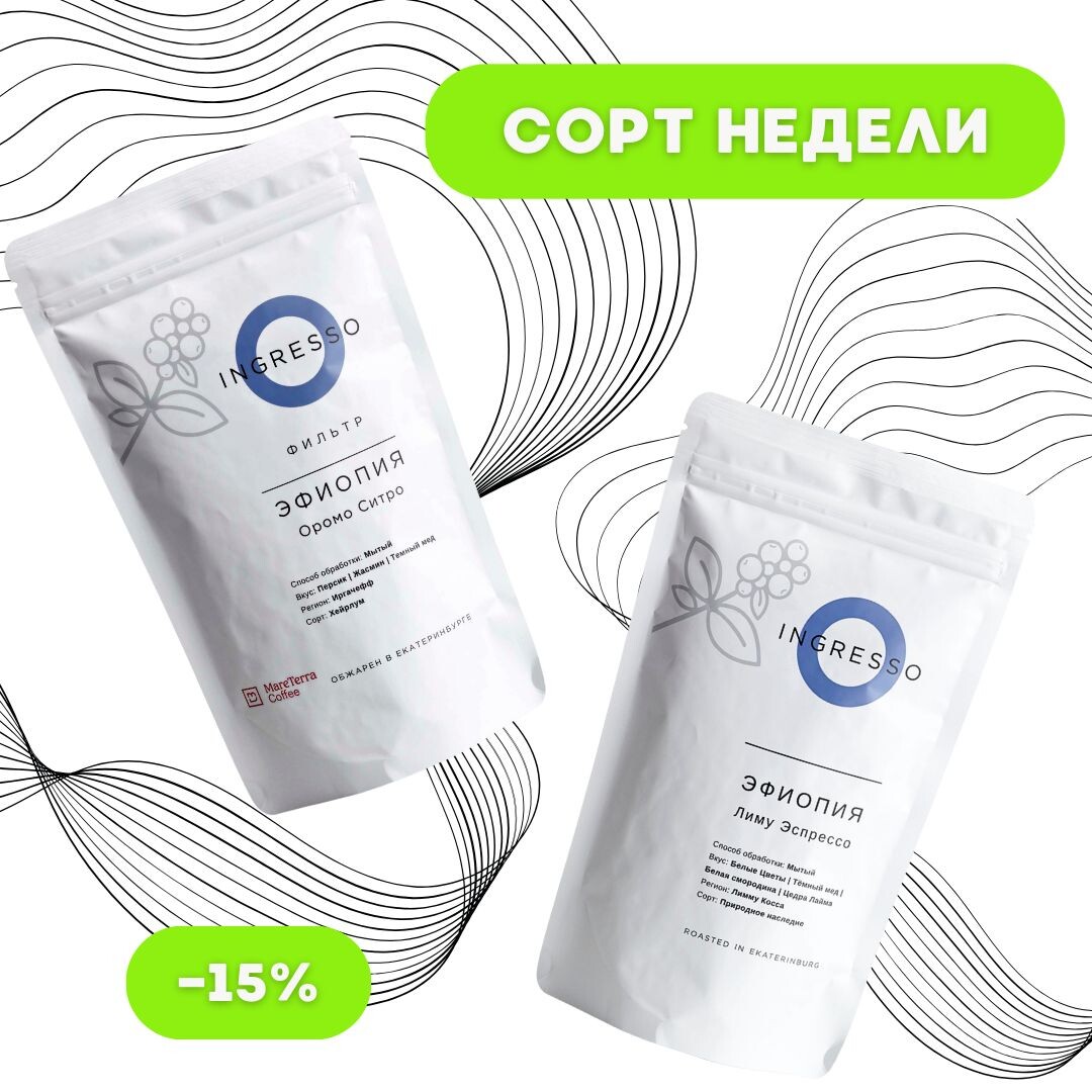 ⬇️ под эспрессо Эфиопия ЛИМУ мытой обработки. В результате более темной обжарки получается кофе с насыщенным плотным вкусом и сладкими нотами меда, белой смородины, терпкостью цедры лайма и ароматом белых цветов. Помимо эспрессо, идеально раскрывается в турке и гейзерной кофеварке. под фильтр Эфиопия ОРОМО СИТРО мытой обработки. Этот кофе из региона Иргачефф с деликатным цветочно-фруктовым профилем. В букете: персик, жасмин и тёмный мёд. Сбалансированная кислотность и чистое послевкусие подчёркивают элегантный характер чашки. Заказ на сайте с доставкой по России: ingresso.coffeе Самовывоз: Екатеринбург: 📍ул. Городская, 20 |пн-пт—12:00-20:00 📍пер. Банковский, 8 |кофейня Breakfast Unit