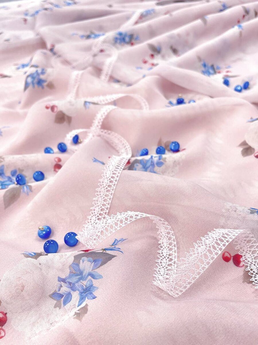 Очаровательный шифон нежно-розового оттенка с принтом в стиле «Ульяна Сергиенко»
