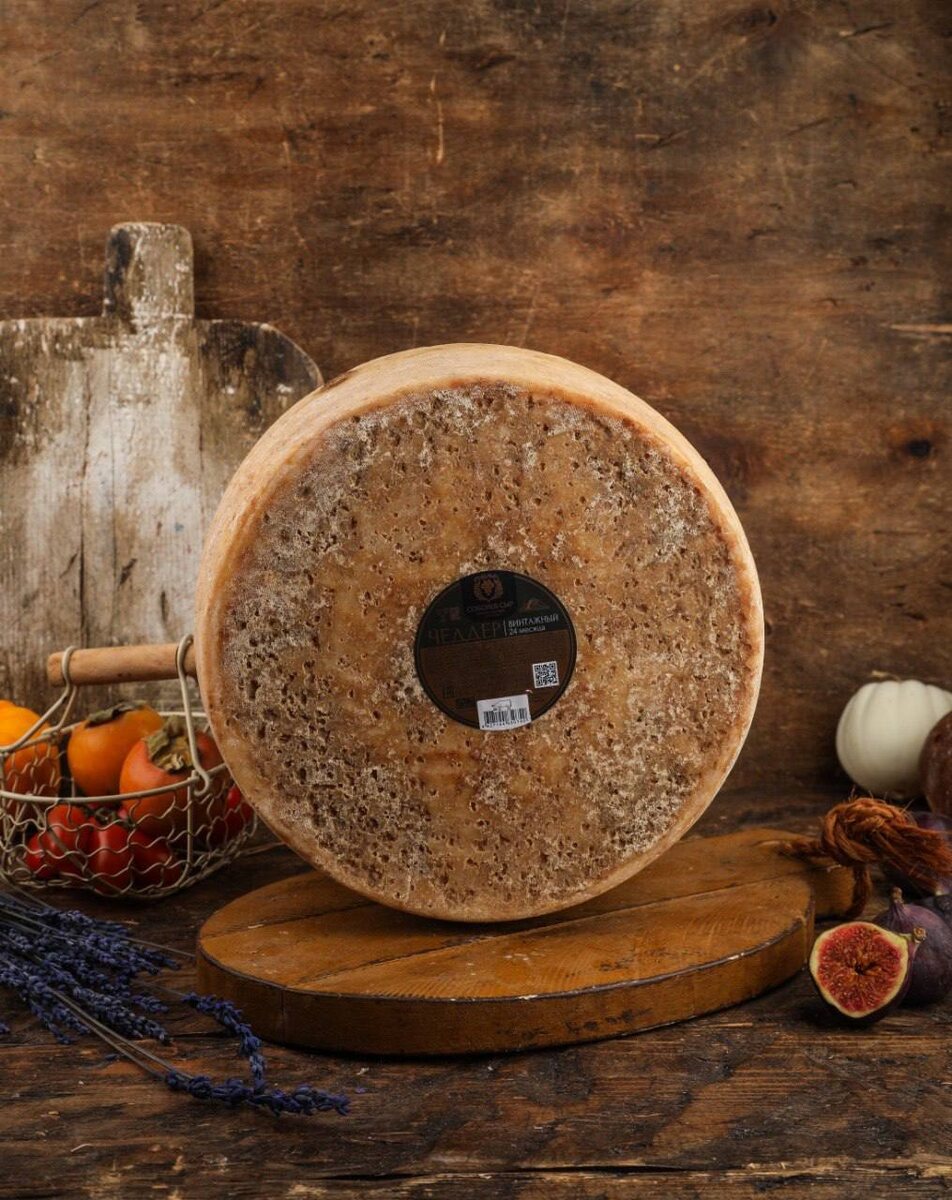 выдержки! Да, снова есть! ⁉️Какой он - на вкус и по структуре? 😋Те, кто любит годовалый и полуторагодовалый Чеддер, тот поймёт - еще более яркое разнотравье и ореховость во вкусе. Послевкусие - длительное и обволакивающее. Этого сыра не съешь много, потому что один кусочек «играет» с рецепторами долго. Он для наслаждения. С крепким кофе или бокалом благородного красного🍷 🧀Структура? Еще более сухая, как никак два года в хранилище терял влагу. Не просите нас отрезать вам идеально ровный кусочек - не получится. Прикасаешься ножом к голове, и сыр крошится. Да, это уже твердый Чеддер👍 На опт - объёмы тоже есть!✈️
