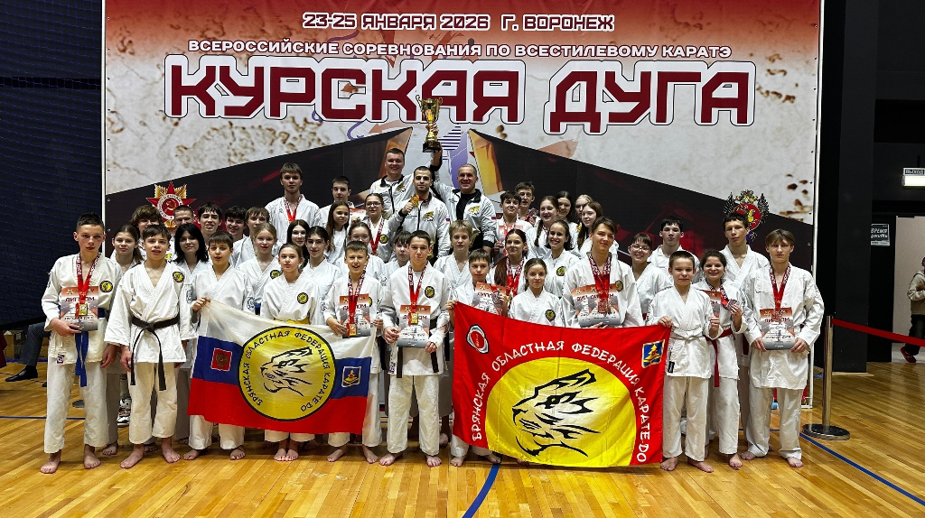 В Воронеже прошли Всероссийские соревнования по всестилевому каратэ «Курская Дуга», где более 1500 спортсменов из 38 регионов сразились за медали. Брянская команда привезла домой 50 наград, включая 20 золотых. С 22 по 25 января во Дворце спорта имени Василия Меркулова в Воронеже состоялись Всероссийские соревнования по всестилевому каратэ «Курская Дуга» и Всероссийский Фестиваль стилевого каратэ. Об этом сообщает департамент ФК и спорта Брянской области. В турнире приняли участие более 1500 спортсменов из 38 регионов страны. Участники отметили высокий уровень организации мероприятия и сильную конкуренцию: в самой многочисленной категории за медали боролись 68 каратистов. Соревнования являлись подготовительным этапом к предстоящему Первенству и чемпионату Центрального федерального округа. Брянский регион на турнире представляли 110 спортсменов федерации всестилевого каратэ. По итогам состязаний брянские каратисты завоевали 50 медалей: 20 золотых, 15 серебряных и 15 бронзовых. В регионал