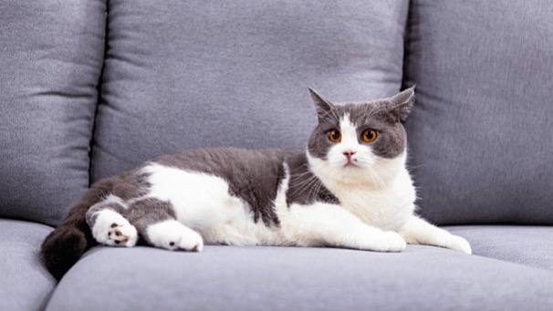 Встал после сна. Одно ухо нормальное, второе загнуто назад. Выглядит жутко. Первый раз пугаешься: сломал себе что-то? Подходишь, поправляешь пальцами. Ухо встаёт на место. Кот даже глазом не моргнул.