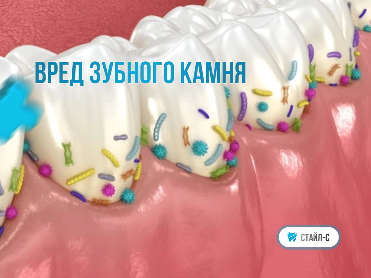Зубной камень — это не просто некрасивый налёт, который делает улыбку менее привлекательной. Это твердые минеральные скопления, способные постепенно причинить немало вреда зубам и деснам. Зубной камень — это ноша, от которой нужно избавляться регулярно и вовремя, а заодно и от рисков, которые зубные отложения несут в себе. Зубной камень может спровоцировать: • Воспаление дёсен, гингивит Первым признаком становится кровоточивость во время чистки. • Пародонтит Отложения проникают глубоко под десну, разрушая поддерживающие структуры зуба — связки и челюстную кость. • Неприятный запах изо рта • Создание благоприятной среды для бактерий, а значит, и кариеса, хронических воспалений. Можно ли удалить зубной камень самостоятельно? Нет, в домашних условиях и домашними средствами удалить зубной камень нельзя. Не путать с зубным налетом! Зубной налет — это мягкие зубные отложения, их мы удаляем дома обычной ежедневной чисткой зубов. С сожалением видим, что сейчас продают так называемые ультразву
