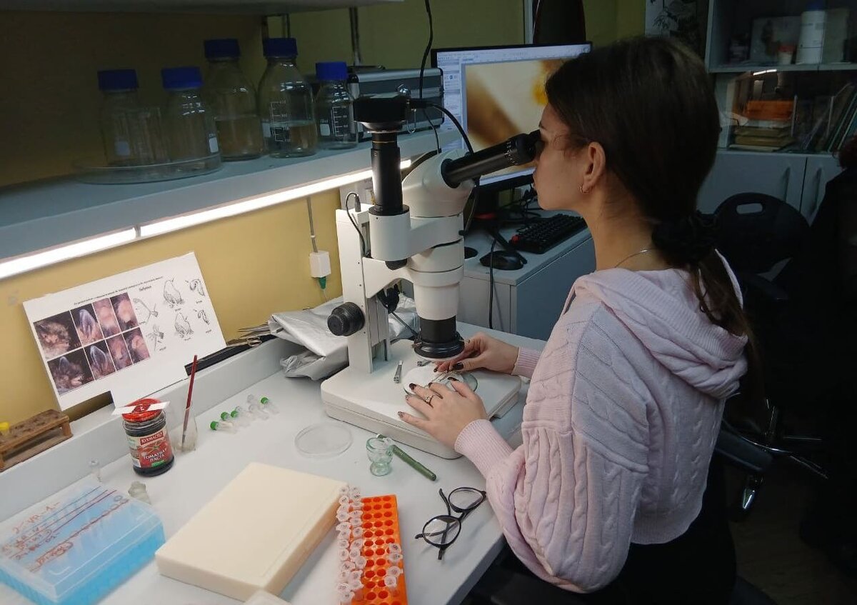 Студенты-биологи Череповецкого государственного университета Анастасия Останина и Дмитрий Кузнецов прошли научно-исследовательскую стажировку в Зоологическом институте Российской академии наук. Они работали в лаборатории по изучению паразитических членистоногих под руководством её заведующего – профессора, доктора биологических наук С.Г. Медведева. На кафедре биологии подчёркивают, что студенты погрузились в классическую научную среду одного из ведущих учреждений мировой и отечественной науки. Во время стажировки они освоили лабораторные методы подготовки микропрепаратов паразитических насекомых – блох и мух-кровососок, а также паразитических клещей. Ребята отточили навыки по определению видовой принадлежности эктопаразитов у рукокрылых. А также они смогли верифицировать состав паразитов, обнаруженных у летучих мышей Дарвинского заповедника в 2025 г. Заключительным аккордом стажировки стали лекции и экскурсия по знаменитому музею Зоологического института, которую провели сотрудники ла