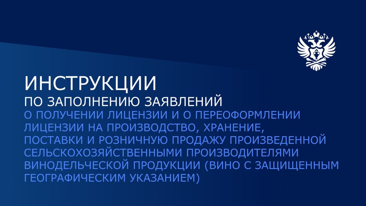 🇷🇺 Росалкогольтабакконтроль предлагает ознакомиться с Инструкциями по заполнению заявлений о получении лицензии и о переоформлении лицензии на производство, хранение, поставки и розничную продажу произведенной сельскохозяйственными производителями винодельческой продукции (вино с защищенным географическим указанием). ⏩ Инструкции содержат пошаговые рекомендации по заполнению полей заявления с наглядными примерами корректного указания необходимых данных. Это поможет избежать ошибок при подаче и ускорит обработку заявления. Инструкции доступны на сайте Федеральной службы по контролю за алкогольным и табачным рынками. #Госуслуги Росалкогольтабакконтроль МАХ | ВКонтакте | Telegram