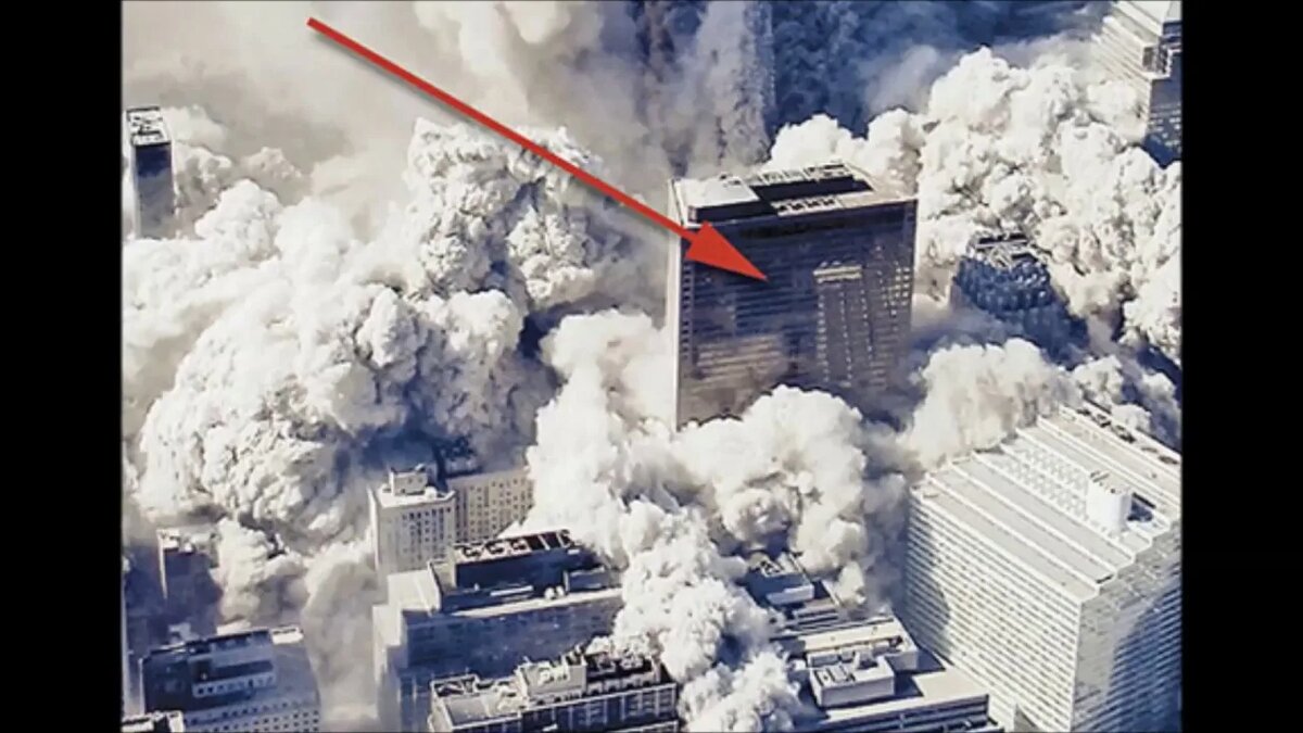 Вечер 11 сентября. На канале BBC World идёт прямой эфир. Корреспондент из Нью‑Йорка рассказывает о происходящем. На экране — бегущая строка: якобы рухнуло здание номер 7 Всемирного торгового центра (WTC 7), в которое, в отличие от башен‑близнецов, никакой самолёт не попадал.