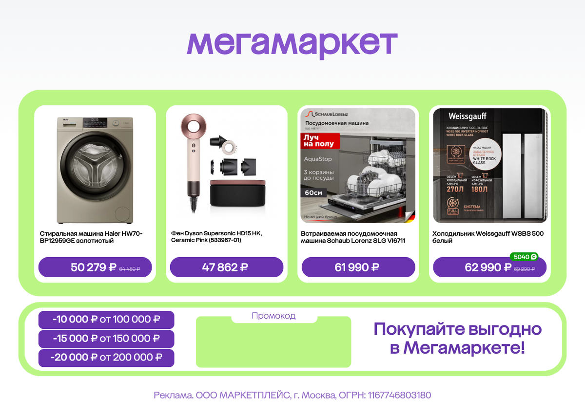 Реклама. ООО «МАРКЕТПЛЕЙС», г. Москва, ОГРН: 1167746803180 erid: 2VtzquXBrmH