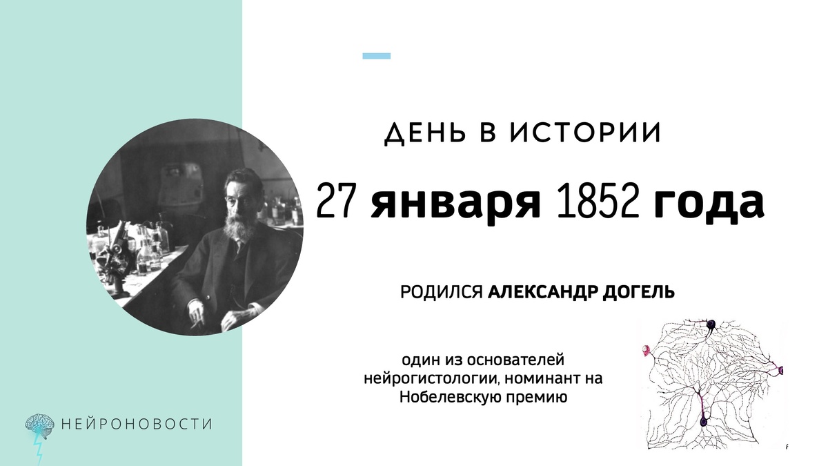 Как и вчерашний день, сегодяшний оказался богатым на даты из истории нейронаук. Сегодня отмечается два важных дня рождения. И первым мы отметим 174 года со дня рождения выдающегося нейроученого Александра Станиславовича Догеля (1852-1922). Догель - пример сильного исследователя с параллельной успешной административной карьерой. Так, Александр Станиславович был деканом медицинского факультета и исполнял обязанности ректора Томского университета. Стал членом-корреспондентом Императорской академии наук. Выполнил фундаментальные труды по нервной системе кишечника и сетчатки, а в Первой нейронаучной войне выбрал сторону Гольджи, ибо был сторонником ретикулярной теории строения мозга (даже сейчас встречаются публикации, которые пытаются доказать правоту Догеля). А кроме того, Догель имел право номинировать на Нобелевскую премию (и четыре раза им воспользовался, дважды номинировав Густафа Ретциуса и по одному - Жака Лёба и Александра Максимова) и сам однажды, в 1911 году, стал номинантом на п