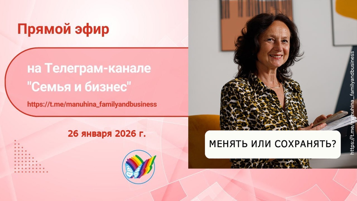 »: Менять или сохранять? Это главный вопрос, который решают люди в каждый момент времени. Как в период сложностей, так и благополучия. И часто один из партнеров за одно, а другой за другое направление. Иногда именно разногласия относительно этого выбора приводит их к внешним консультантам. Но есть ли здесь противоречие? В чем оно конкретно? Или это разные варианты развития их отношений, каждый имеющий свои преимущества и минусы? А если это касается бизнеса? Или карьеры? Или здоровья? Или семьи? Как выбрать? Как помогать при таком запросе? Смотрите в записи, как на реальных примерах из своей практики системного коуча и семейного психолога я разобрала эту тему: ▶️ https://rutube.ru/video/private/d096b4f25e73620393e7866be1a0391c/?p=7xEEHV5B5z1GXSmV-31HtA ▶️ https://youtu.be/dcNlxlt5Xx0