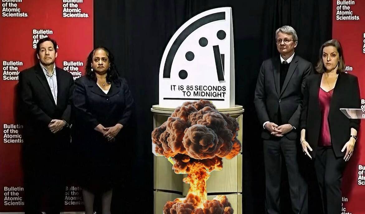 Теперь они показывают 85 секунд до полуночи. «Часы Судного дня» — проект журнала Bulletin of the Atomic Scientists, запущенный в 1947 году. Полночь на часах символизирует момент глобальной катастрофы — ядерной войны или климатического коллапса. Положение стрелок ежегодно оценивают эксперты. Какое же время отсчитывали часы в разные эпохи? Холодная война: · 1953 — 2 минуты (испытания термоядерного оружия). · 1991 — 17 минут (окончание холодной войны, договор СНВ-I). Современность: · 2020 год - 100 секунд (ядерные, климатические угрозы, дезинформация). · 2023 - 90 секунд (Украина, климат, биологические риски). · 2026 - 85 секунд (новый антирекорд из-за эскалации конфликтов, ИИ и климатического кризиса). Что же окончательно прикончит человечество, вот в чем вопрос. «Щукин и всё»