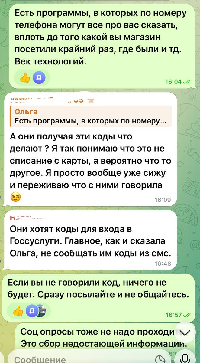 Я пишу не только в дзене, у меня есть чат дома, где участников больше 200 человек. Пишу о всех видах мошенничества, о которых публикуют различные каналы правоохранительной направленности. Перед Новым годом чуть ли не матом уже объясняла жителям, что никакие ключи нам не меняют, не надо называть код, на что мне одна очень умная соседка сказала «Что я лично ей оплачу ключи, если это все же правда и нам меняют ключи». У меня в этот момент уже были проблемы с ват сапом, с трудом отправляла смс, хорошо была группа в Максе и телеграмме, куда тоже отправляла предупреждение. Итог - мошенники остались ни с чем. Хотя желающих получить ключи было много.