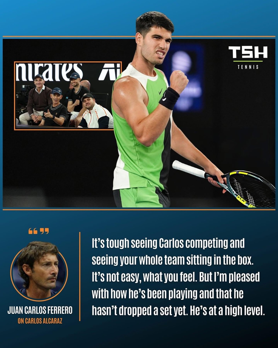 "Тяжело видеть, как Карлос соревнуется, и видеть всю свою команду, сидящую в ложе. Это нелегко, то, что ты чувствуешь. Но я доволен тем, как он играет, и тем, что он еще не проиграл ни одного сета. Он на высоком уровне".
