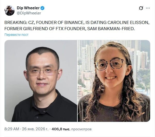CZ, основатель Binance, встречается с Кэролайн Эллисон, бывшей девушкой основателя FTX Сэма Бэнкман-Фрида.