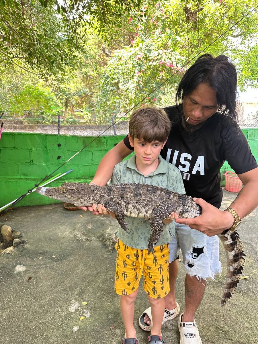 ! Мы были на крокодиловой ферме, сын еще хотел к змеям, но вспомнил про виар очки! Мы развлекались как могли! Просто на острове развлечений особо нет🥴 мы купили торт (моя ошибка) это был самы галимый торт в моей жизни ! 1. Нашли потрясающую кофейню и позавтракали там, тортики были один лучше другого! 2. Крокодиловая ферма, посмотрели шоу, очень переживала что будут над ними издеваться, но вроде норм! Не люблю такие места, где издеваются над животными, ради развлечения туристов! 2. Детские развлечения в лотусе, попросили даже продлить еще на час! 3. Пагода (обожаю это место), великолепный обзор на аэропорт, взлет и посадка самолетов как на ладони! 4. Картинг, быстро, весело, в этот раз я не каталась 🙃 5. Виар (само собой) 6. Дома в семье тортик, ну, гавно конечно полное, внутри хлеб соленый) 😂😂😂 бисквитом и не пахнет! Но симпатичный, относительно всего тайского кинематографа 🙃 ну, не умеют они делать тортики! Внутренности меня поразили! В целом все было хорошо) а завтра на