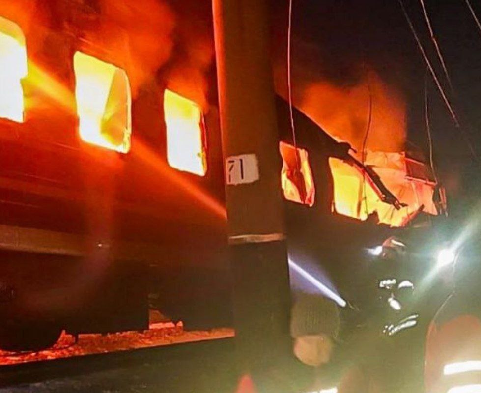 Видео и фото с горящим поездом в Барвенково Харьковской области после удара Гераней