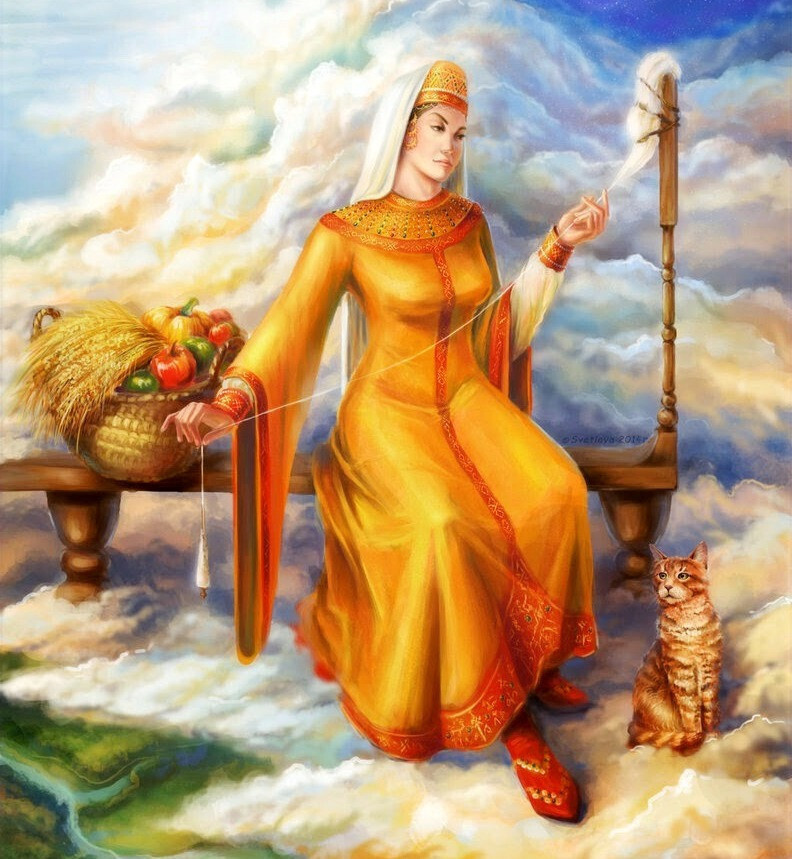 - Веретено и прялка — основные атрибуты, символизирующие прядение нитей судьбы. Прялка в доме была почти святыней: её не давали чужим, не ломали, не бросали на пол.