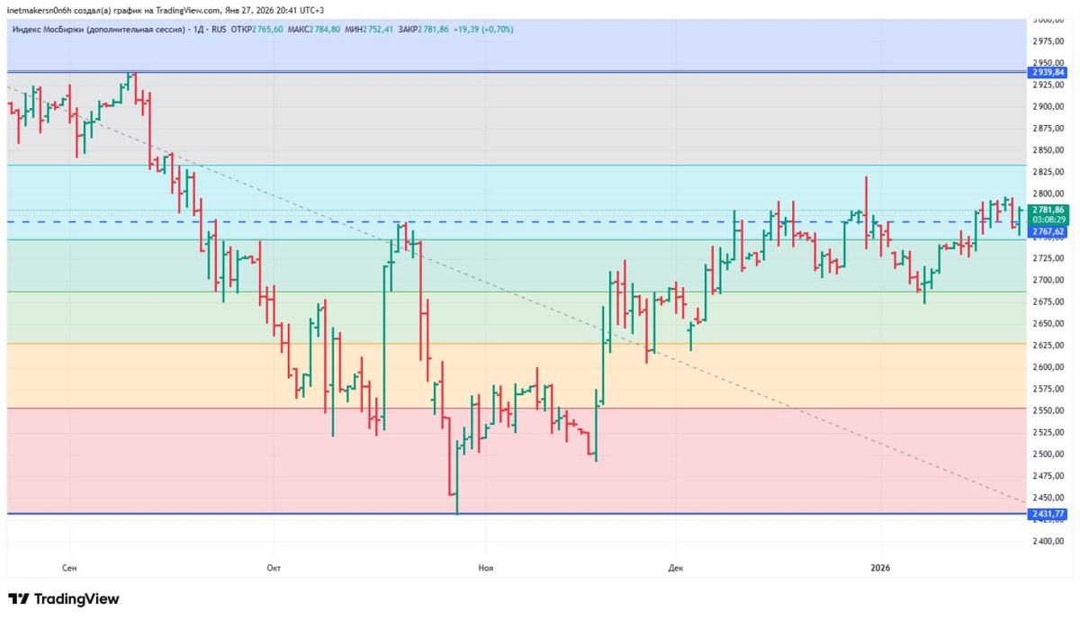 ❗️27 января российский фондовый рынок показал рост, индекс МосБиржи укрепился на 0,48% до уровня 2781,39