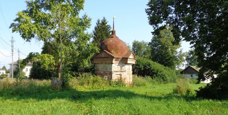 С месте в карьер - в самом центре села, возле Торговой площади, дремлет то, что некогда звалось Кремлем. Ну, Кремлем он был когда-то, сейчас от него остались лишь пару церквей, колокольня да три разваливающиеся башни-часовни по углам погоста. Ограда по периметру, когда-то, несомненно, существовала, но время стерло её с лица земли, оставив лишь воспоминания. Украшение бывшего Кремля — взметнувшаяся ввысь на 56 метров колокольня. Это примерно 18 этажей. Вот бы забраться на самый верх! Жаль, проход закрыт. Вторая по значимости достопримечательность села — Чёрный пруд. Он же пожарный водоем, он же стиралка, он же каток в зимнее время. А название водоёма, говорят, пошло от старых кузниц, что когда-то дымили на его берегах. Дескать от угольной пыли да гари вода и почернела. Мы подошли к берегу. Вроде всё облагорожено, видно, что село активно развивается, но прогулочные дорожки, пока что, просто насыпаны, и с коляской вокруг пруда особо не разгуляешься, хотя это вполне возможно — круг всего 1