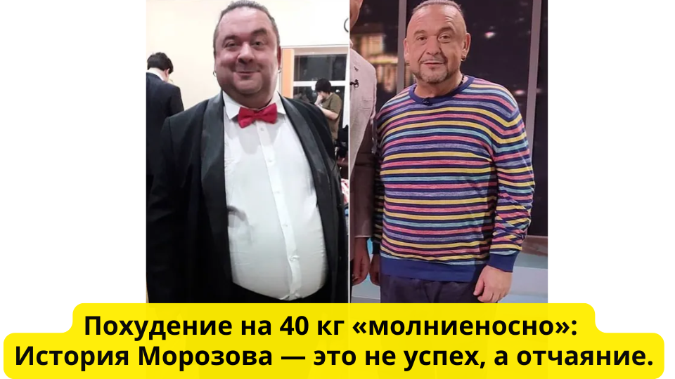 Вчера мы с вами в комментариях обсуждали, как легко перепутать следствие с причиной, глядя на стремительное похудение звезд. И сегодня — нагляднейший пример, который буквально кричит об этом. Речь пойдет об артисте юмористических программ, харизматичном Александре Морозове, который похудел на 40 килограммов не за два года, а, как говорят, «молниеносно».
