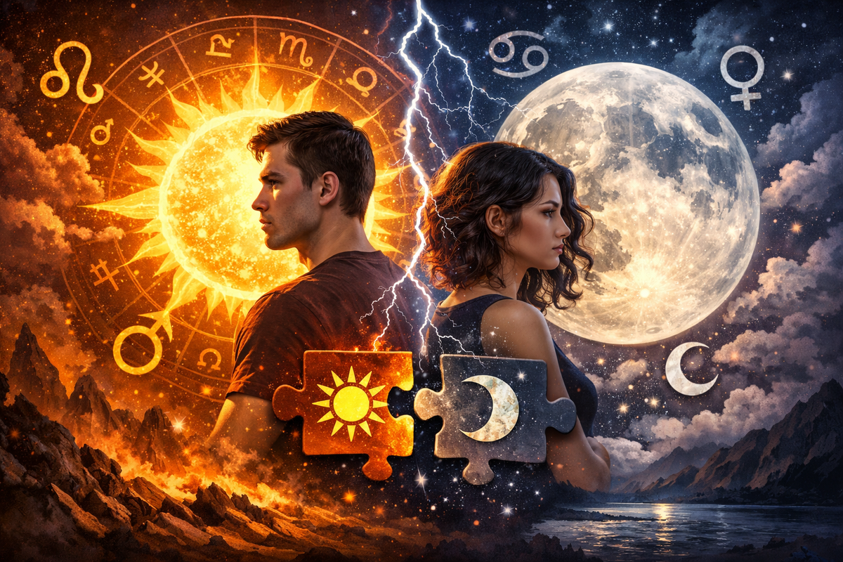 Синастрия помогает астрологам анализировать взаимодействие двух людей через их астрологические карты. Один из интересных аспектов — это когда Солнце одного партнера в квадрате с Луной другого. Что это означает для отношений? Давайте разберемся. Солнце — символ нашей личности, целей и самовыражения. Луна — символ эмоций, потребностей в безопасности и интуиции. Когда Солнце одного человека в квадрате с Луной другого, это создает напряжение между их личными и эмоциональными потребностями. Квадрат — это аспект, который всегда приносит напряжение. В данном случае — столкновение двух сил: Солнце — эго, амбиции, активность. Луна — чувства, интуиция, эмоциональная реакция. "Квадрат всегда вызывает конфликт, но и возможность изменений." "Солнце партнера может не понимать эмоциональных потребностей Луны." Один человек может быть более логичен и рационален, а другой — чувствителен и интуитивен. Это часто приводит к недоразумениям. Луна нуждается в эмоциональной поддержке и безопасности, а Солнце