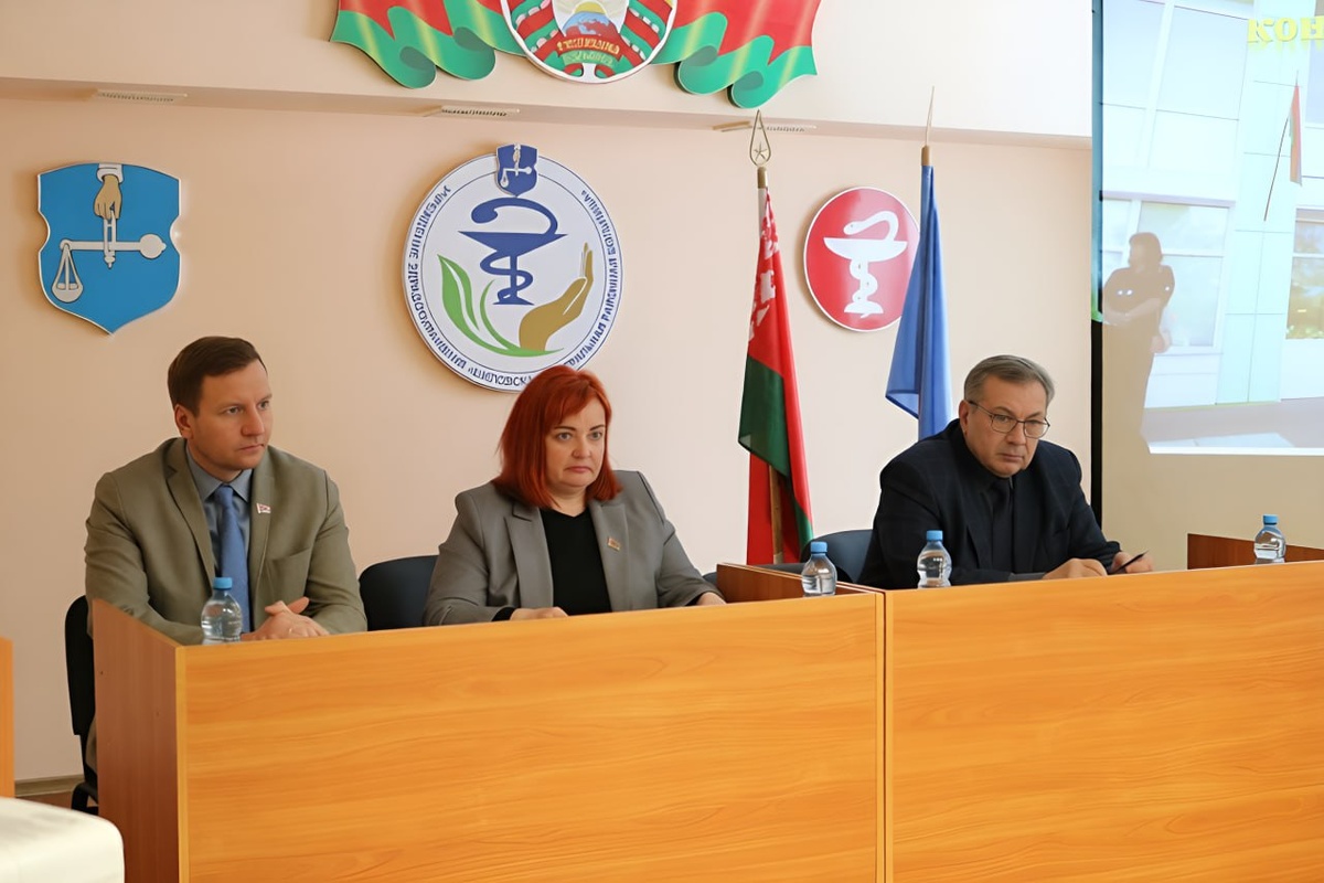2026-м. ✅В мероприятии приняли участие заместитель председателя райисполкома Ирина Раинчик, главный врач Могилевской областной клинической больницы Анатолий Кулик, главный врач районного центра гигиены и эпидемиологии Артур Костюкевич. 📝Главный врач Александр Лобов в своем докладе отметил, в отчетном периоде была обеспечена устойчивая работа учреждений здравоохранения района, проделана работа по выполнению модели конечных результатов деятельности здравоохранения, а также выполнению государственных минимальных стандартов. ➡️Были проанализированы основные показатели работы учреждения за 2025 год. Среди них – демографическая ситуация, диспансеризация, доходы от внебюджетной деятельности, выполнение государственных минимальных социальных стандартов, кадровая политика, экспорт медицинских услуг и другие. А также проанализирована работа АВОП и ФАПов.
