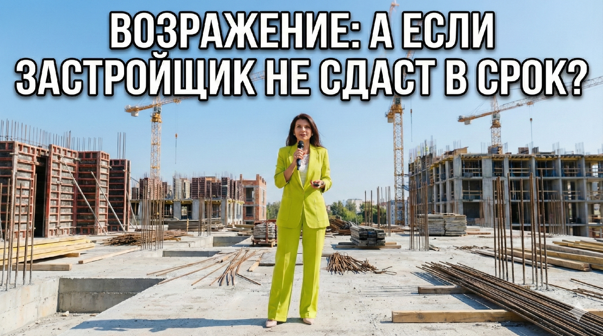 В 80% случаев возражение про сроки закрывается за 5 минут, если показать документы и статистику застройщика.