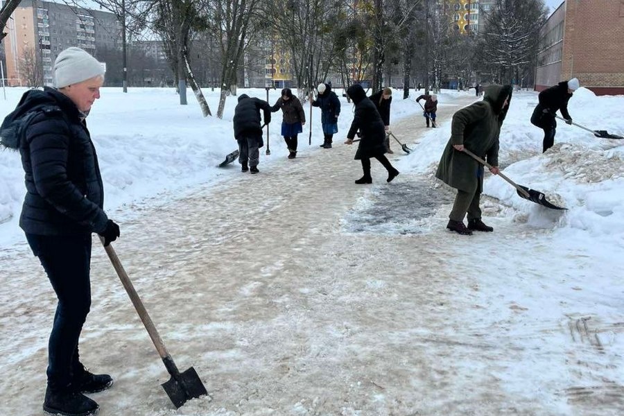Учителя, школьники и технический персонал плечом к плечу превращают заснеженные дворы в безопасные и уютные пространства.