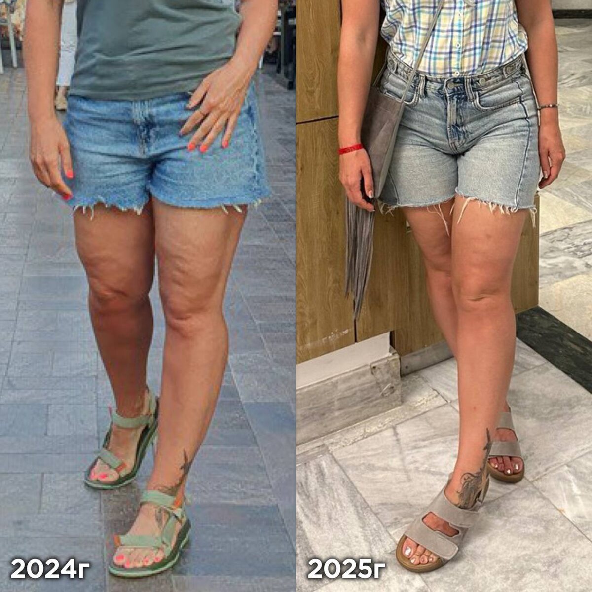 Альтернатива салонной процедуре. Обсудили вчера с вами салонную процедуру за 15 000₽. И решили на примере (на фото👆🏼) показать альтернативу. Самомассаж Ежами ждет от вас аванса (но небольшого😁) Результаты появляются через 1-2 недели. Но и салонных процедур требуется не одна. Однако финал искупает всё! 🔥 — Уходит отёк. В этой зоне часто именно он дает объем и рыхлость. — Кожа подтягивается, становится более упругой. Для примера на фото сравнили ножки нашей участницы марафонов с отдыха в 24 году, когда она не была знакома с Ежовым самомассажем — и в 25-м, когда она с июля и до конца летнего сезона получила классные результаты. Без боли и только в домашних условиях👍🏻 Следующий поток марафона по самомассажу на всё Тело и локальные зоны стартует 1 февраля. ОН БЕСПЛАТНЫЙ🫶🏻 И начать можно только с массажным маслом. Чтобы попасть в группу марафона, напишите нам в @realslimpro и мы отправим ссылку 🔥