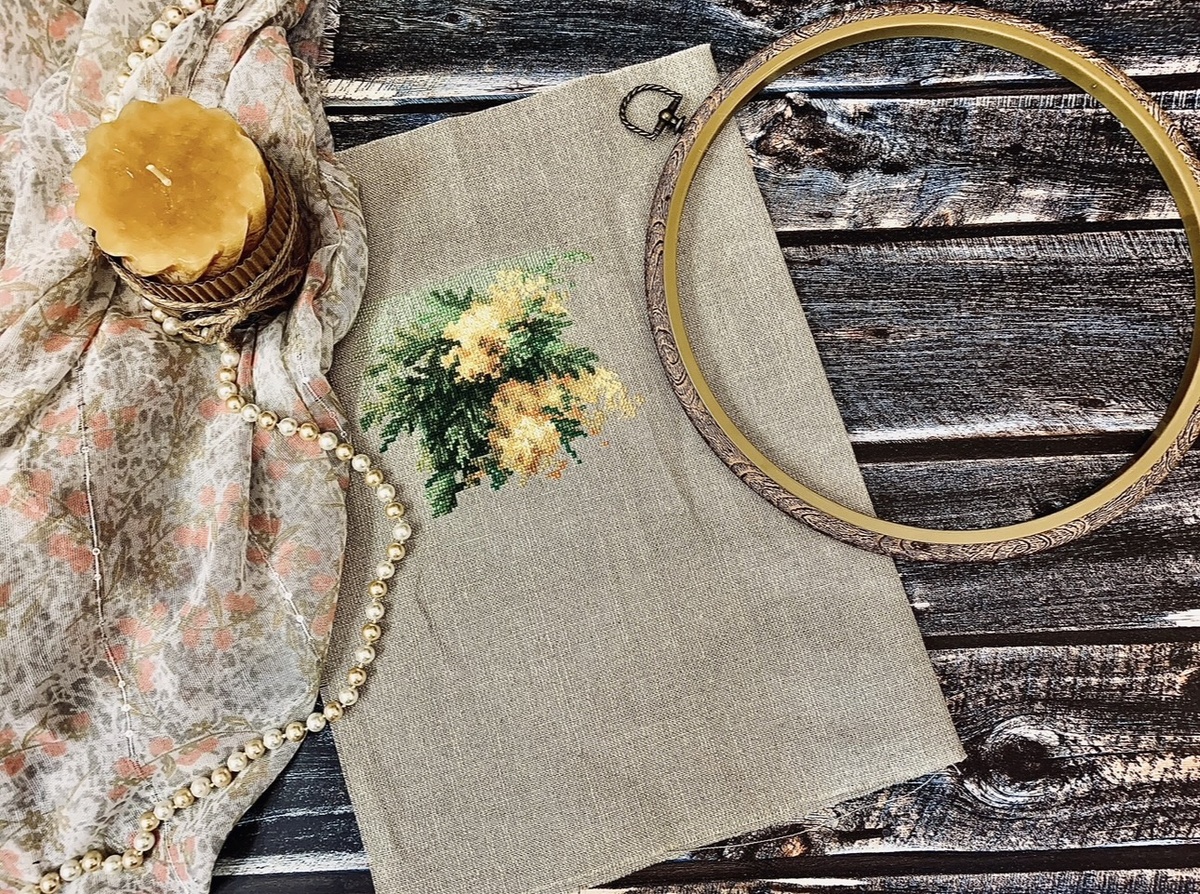 Я заметила странную вещь: в январе я всегда вышиваю по-разному — и это напрямую связано с тем, что происходит в моей жизни. Решила посмотреть фотографии и вспомнить, какие процессы я брала в руки в конце января в разные годы — с 2020-го и до сегодня. Хоть я и начала активно вышивать с 2015-2016, но фотографий у меня нет. А с 2020 года уже можно найти. Шесть лет назад я вышивала преимущественно нежные, цветочные, девчачьи сюжеты. Это красивая работа от Риолис «Мимоза» до сих пор радует меня. Получилась работа просто изумительно. Я ещё и поменяла Аиду на равномерку с люрексом, что придало дизайну яркости и ещё большего очарования. Но было вышивать не просто. Все таки равномерка у меня была 32 каунта, а изначально производитель положил аиду 14 каунта. Да ещё и вышивала шерстью. Поэтому крестики выкладывались непросто. Но результат впечатляет! В том же году я рассматривала набор от Алисы «Вечерние грёзы». Все хотела его вышить, но так и не стартовала с ним. Нравится ли мне этот дизайн? Да,