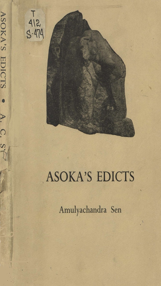 э.). Работа отличается тщательным переводом и интерпретацией этих указов, в которых, по мнению автора, содержится универсальное послание Ашоки об этическом поведении и духовном росте. 🇮🇳📖 Sen,Amulyachandra Asoka's edicts / By Amulyachandra Sen. With a pref. by Suniti Kumar Chatterji. Publ. for the Inst. of indology. - Calcutta : The Indian publicity soc., 1956. - XIV, 170 p. : ill., 4 l.ill. - (Inst. for indology ser; N.7). - Библиогр. c. XIII-XIV. Предметная рубрика: История Индии • Исторические источники Орфография • Индийские языки • 🕉 👉 Читать книгу #bookzealots