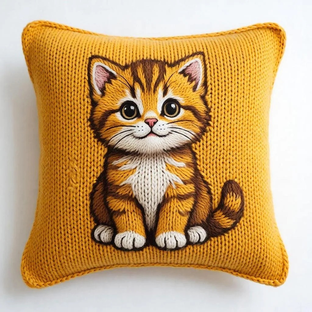 - Пряжа двух цветов: основного фона и контрастного цвета для рисунка котика.