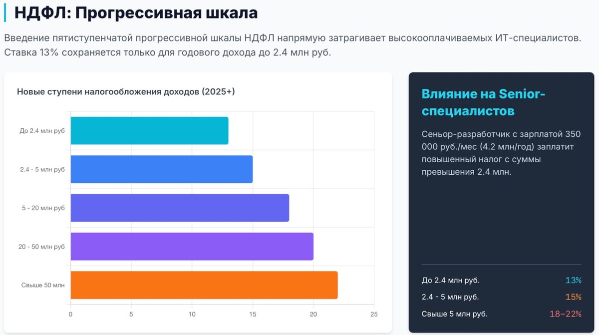 А вообще, странно звучит словосочетание "высокооплачиваемый ИТ- специалист" :) в текущих реалиях, когда люди месяцами ищут работу... Но занятно, что сейчас парень может хвастаться девушкам "милая, а я плачу НДФЛ 15%" :) и это хороший сигнал :) А уж если он назовет 22% - все, сердечко завоевал... Русский ИТ бизнес