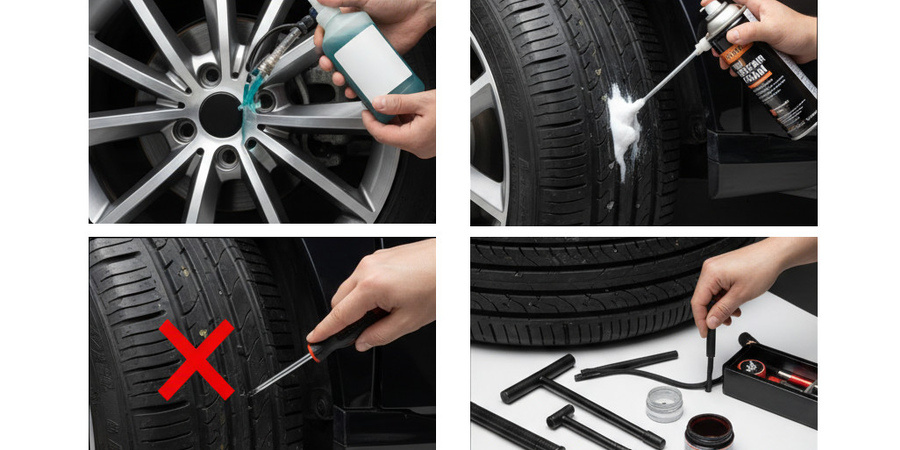 Устранение проколов шин — важный навык для любого водителя, особенно в дорожных условиях. Все методы ремонта условно делятся на две категории: Ниже рассмотрим наиболее популярные и эффективные способы, которые можно применить прямо на дороге. Первые три — временные. Четвёртый, при правильном подходе, даёт надёжное и долговечное решение. Один из самых эффективных профилактических методов — предварительная закачка в шины специального герметизирующего состава. Этот состав находится внутри колеса в жидком виде и автоматически реагирует на повреждение. Как это работает: Когда актуально: Этот метод особенно ценен для тех, кто часто ездит по бездорожью или в условиях, где помощь далеко. Один из самых популярных временных способов — использование герметика в аэрозольных баллонах. Пошаговая инструкция: Преимущества: Важно: после использования герметика рекомендуется как можно скорее обратиться в шиномонтаж — средство не является долгосрочным решением. Это старый, но проверенный способ, который