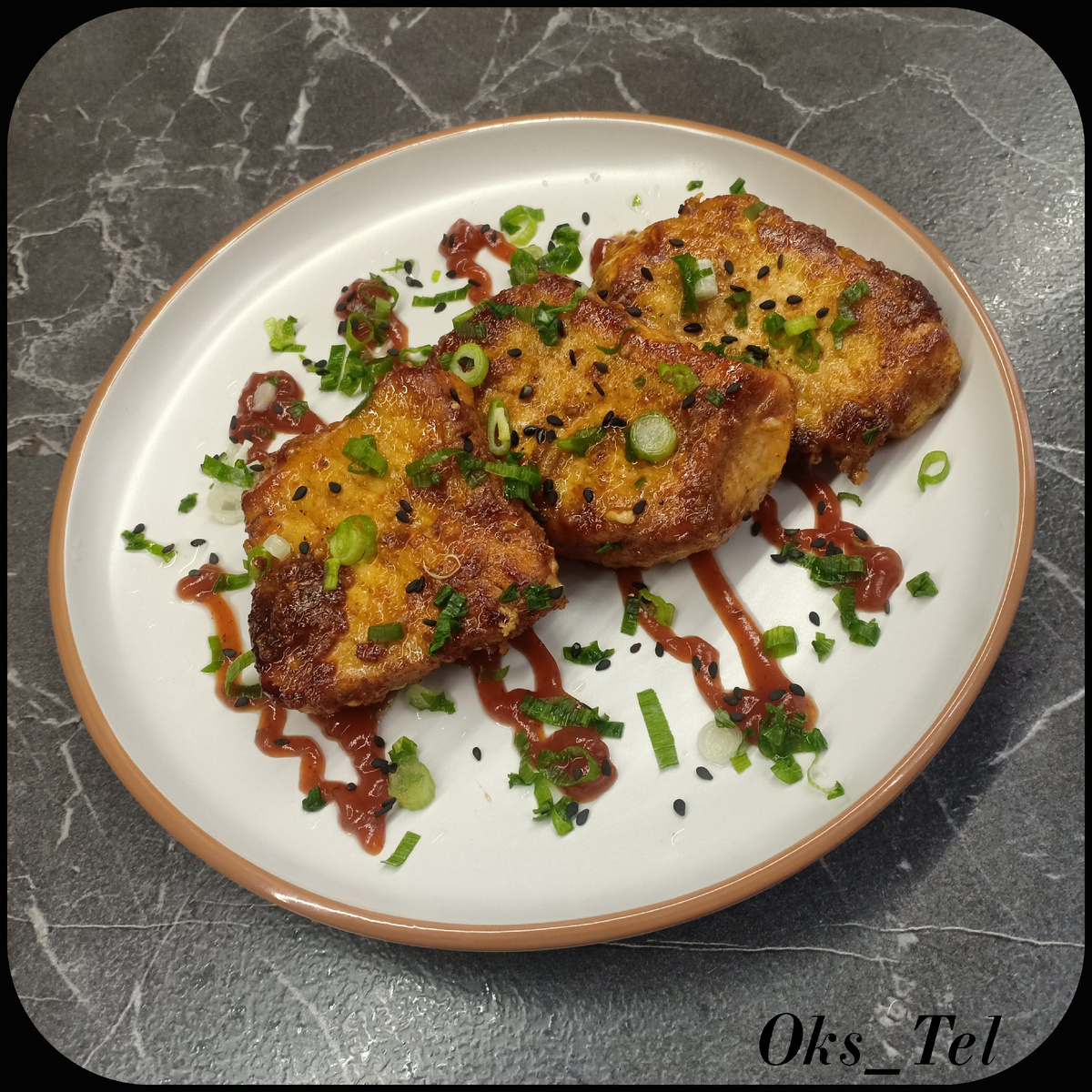 Друзья, сегодня предлагаю вам очень простой, быстрый и довольно вкусный вариант приготовления свиного мяска, с вкуснейшей ароматной корочкой, который нашла на одном из кулинарных сайтов. Понадобится: - 800г свиной вырезки, - 2ст.л. коричневого сахара, - 2ч.л. сладкой паприки, - 2ч.л. молотого кориандра, - 1ст.л. соевого соуса, - 1ч.л. перца чили, - 1ст.л. свежего натертого имбиря, - 3ч.л. свежего натертого чеснока, - масло растительное для жарки – по вкусу. Приготовление: 1. Свиную вырезку нарезать поперек волокон на кусочки толщиной 1,5-2см. 2. Имбирь и чеснок очистить и натереть на мелкой терке. 3. В глубокой мисочке смешать сахар, паприку, кориандр, соевый соус, перец чили, натертые имбирь и чеснок. 4. Получившейся смесью хорошенько натереть нарезанное мясо и оставить мариноваться на 10-15мин. 5. В сковороду налить немного растительного масла и хорошо разогреть его, затем выложить мясо и жарить его с обеих сторон по 5-7мин на среднем огне до появления красивой румяной корочки. Прият